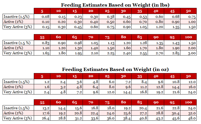 The amount of food your pup will eat depends on their size and their activity level. Volumes will also change seasonally, with indoor dogs eating more in the summer than winter.